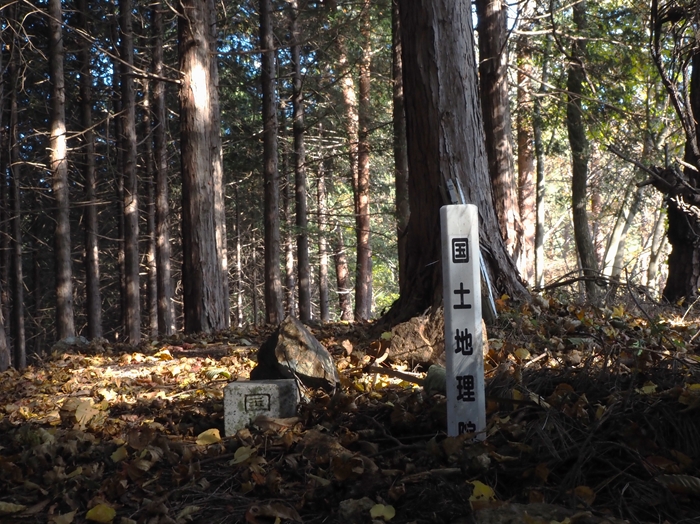 道路脇の踏跡を辿り、沢へ降りて沢型を登ることにした。尾根が行けそうなら修正するつもりだったが、やはり右手が使えないので、大人しく沢型を行くことになった。獣道も利用でき、藪も皆無で稜線に乗る。間もなく、頂上。