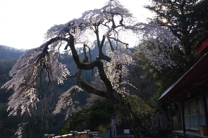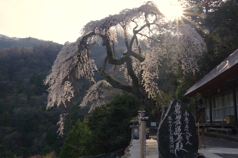 早川町の夏秋(なつあけ)。町指定天然記念物、学定寺のイトザクラ。これをずっと見たかった。