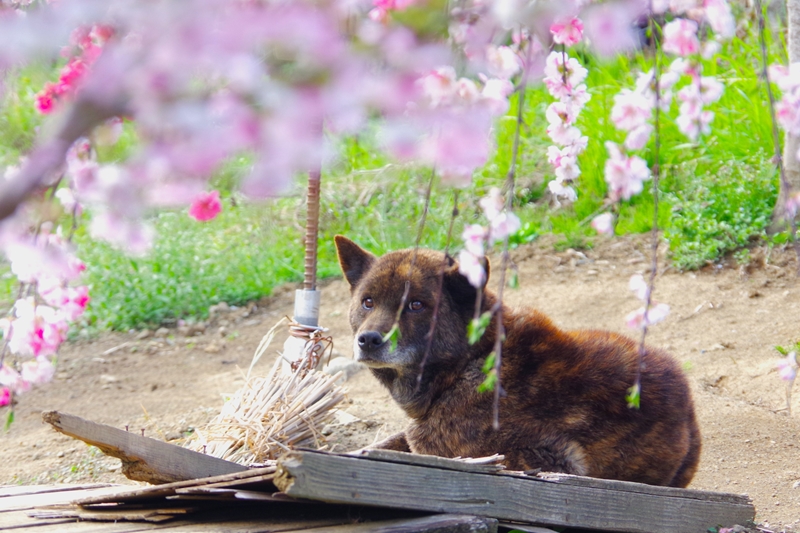 1軒だけ在住のようで、恐らくは甲斐犬が2匹。この子は大人しい。高齢なのか、温厚な性格なのか。